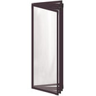 This menu cover boasts a maroon double stitched edge for long-lasting use. Its standard smooth black metal corners also add a dignified and polished touch. Additionally, it is easy to wipe down at the end of the day, allowing you to give every guest the best possible dining experience. The clear, gloss finish of the view panes hides scratches and helps promote excellent visibility, ensuring that customers will be able to easily read your options. Use this menu cover to present your offerings in a refined and organized way!