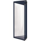 Present your menu offerings in style with this H. Risch, Inc. TE-10V Deluxe Sewn 4 1/4" x 14" maroon 10 view vinyl menu cover with black smooth corners and gloss finish! With a colorful leatherette trim, this menu cover promotes a professional appearance in any setting. Its five pockets accommodate ten 4 1/4" x 14" inserts, making it perfect for presenting your signature dishes, happy hour specials, wine lists, or dessert menus. Plus, if your menu changes frequently, the inserts can be removed and replaced within seconds.