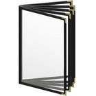 Present your menu offerings in style with this H. Risch, Inc. TE-10V Deluxe Sewn 5 1/2" x 8 1/2" blue 10 view vinyl menu cover with gold decorative corners and matte finish! With a colorful leatherette trim, this menu cover promotes a professional appearance in any setting. Its five pockets accommodate ten 5 1/2" x 8 1/2" inserts, making it perfect for presenting your signature dishes, happy hour specials, wine lists, or dessert menus. Plus, if your menu changes frequently, the inserts can be removed and replaced within seconds.