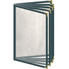 Present your menu offerings in style with this H. Risch, Inc. TE-10V Deluxe Sewn 5 1/2" x 8 1/2" blue 10 view vinyl menu cover with gold decorative corners and gloss finish! With a colorful leatherette trim, this menu cover promotes a professional appearance in any setting. Its five pockets accommodate ten 5 1/2" x 8 1/2" inserts, making it perfect for presenting your signature dishes, happy hour specials, wine lists, or dessert menus. Plus, if your menu changes frequently, the inserts can be removed and replaced within seconds.