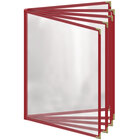 Present your menu offerings in style with this H. Risch, Inc. TE-10V Deluxe Sewn 8 1/2" x 11" black 10 view vinyl menu cover with gold decorative corners and gloss finish! With a colorful leatherette trim, this menu cover promotes a professional appearance in any setting. Its five pockets accommodate ten 8 1/2" x 11" inserts, making it perfect for presenting your signature dishes, happy hour specials, wine lists, or dessert menus. Plus, if your menu changes frequently, the inserts can be removed and replaced within seconds.