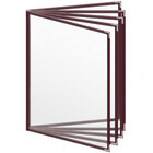 Present your menu offerings in style with this H. Risch, Inc. TE-10V Deluxe Sewn 8 1/2" x 11" brown 10 view vinyl menu cover with silver smooth corners and matte finish! With a colorful leatherette trim, this menu cover promotes a professional appearance in any setting. Its five pockets accommodate ten 8 1/2" x 11" inserts, making it perfect for presenting your signature dishes, happy hour specials, wine lists, or dessert menus. Plus, if your menu changes frequently, the inserts can be removed and replaced within seconds.