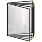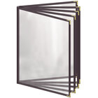 This menu cover boasts a maroon double stitched edge for long-lasting use. Its standard smooth gold metal corners also add a dignified and polished touch. Additionally, it is easy to wipe down at the end of the day, allowing you to give every guest the best possible dining experience. The clear, gloss finish of the view panes hides scratches and helps promote excellent visibility, ensuring that customers will be able to easily read your options. Use this menu cover to present your offerings in a refined and organized way!
