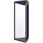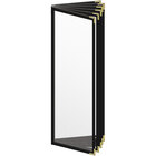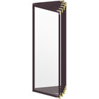 This menu cover boasts a maroon double stitched edge for long-lasting use. Its standard smooth gold metal corners also add a dignified and polished touch. Additionally, it is easy to wipe down at the end of the day, allowing you to give every guest the best possible dining experience. The clear, frosted matte finish of the view panes hides scratches and helps promote excellent visibility, ensuring that customers will be able to easily read your options. Use this menu cover to present your offerings in a refined and organized way!