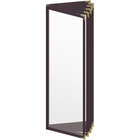 This menu cover boasts a red double stitched edge for long-lasting use. Its standard decorative gold metal corners also add a dignified and polished touch. Additionally, it is easy to wipe down at the end of the day, allowing you to give every guest the best possible dining experience. The clear, frosted matte finish of the view panes hides scratches and helps promote excellent visibility, ensuring that customers will be able to easily read your options. Use this menu cover to present your offerings in a refined and organized way!