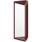 Present your menu offerings in style with this H. Risch, Inc. TE-12V Deluxe Sewn 4 1/4" x 14" red 12 view vinyl menu cover with gold decorative corners and matte finish! With a colorful leatherette trim, this menu cover promotes a professional appearance in any setting. Its six pockets accommodate twelve 4 1/4" x 14" inserts, making it perfect for presenting your signature dishes, happy hour specials, wine lists, or dessert menus. Plus, if your menu changes frequently, the inserts can be removed and replaced within seconds.