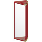 H. Risch, Inc. TE-12V Deluxe Sewn 4 1/4" x 14" Red 12 View Vinyl Menu Cover with Gold Decorative Corners and Matte Finish