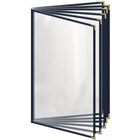 Present your menu offerings in style with this H. Risch, Inc. TE-12V Deluxe Sewn 8 1/2" x 14" brown 12 view vinyl menu cover with gold smooth corners and gloss finish! With a colorful leatherette trim, this menu cover promotes a professional appearance in any setting. Its six pockets accommodate twelve 8 1/2" x 14" inserts, making it perfect for presenting your signature dishes, happy hour specials, wine lists, or dessert menus. Plus, if your menu changes frequently, the inserts can be removed and replaced within seconds.