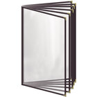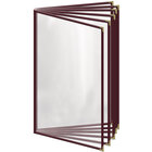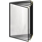 Present your menu offerings in style with this H. Risch, Inc. TE-12V Deluxe Sewn 8 1/2" x 14" green 12 view vinyl menu cover with gold decorative corners and gloss finish! With a colorful leatherette trim, this menu cover promotes a professional appearance in any setting. Its six pockets accommodate twelve 8 1/2" x 14" inserts, making it perfect for presenting your signature dishes, happy hour specials, wine lists, or dessert menus. Plus, if your menu changes frequently, the inserts can be removed and replaced within seconds.