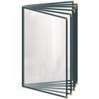 H. Risch, Inc. TE-12V Deluxe Sewn 8 1/2" x 14" Green 12 View Vinyl Menu Cover with Gold Decorative Corners and Gloss Finish
