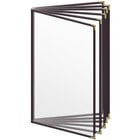 Present your menu offerings in style with this H. Risch, Inc. TE-12V Deluxe Sewn 8 1/2" x 14" red 12 view vinyl menu cover with gold smooth corners and matte finish! With a colorful leatherette trim, this menu cover promotes a professional appearance in any setting. Its six pockets accommodate twelve 8 1/2" x 14" inserts, making it perfect for presenting your signature dishes, happy hour specials, wine lists, or dessert menus. Plus, if your menu changes frequently, the inserts can be removed and replaced within seconds.
