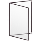 This menu cover boasts a blue double stitched leatherette edge for long-lasting use. Its silver smooth metal corners also add a dignified and polished touch. Additionally, it is easy to wipe down at the end of the day, allowing you to give every guest the best possible dining experience. The tinted, matte finish helps to disguise scratches, allowing for menus to retain their attractive appearance for years to come. Use this menu cover to present your offerings in a refined and organized way!