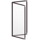 Present your menu offerings in style with this H. Risch, Inc. TED Deluxe Sewn 4 1/4" x 11" maroon 4 view vinyl menu cover. With a colorful leatherette trim, this menu cover promotes a professional appearance in any setting. Its two pockets accommodate (4) 4 1/4" x 11" inserts, making it perfect for presenting your signature dishes, happy hour specials, wine lists, or dessert menus. Plus, if your menu changes frequently, the inserts can be removed and replaced within seconds.