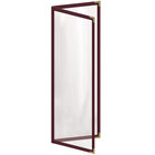 H. Risch, Inc. TED Deluxe Sewn 4 1/4" x 14" Maroon 4 View Menu Cover with Gold Decorative Corners and Gloss Finish