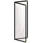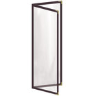 This menu cover boasts a maroon double stitched leatherette edge for long-lasting use. Its gold decorative metal corners also add a dignified and polished touch. Additionally, it is easy to wipe down at the end of the day, allowing you to give every guest the best possible dining experience. The clear, glossy design of the view panes helps promote excellent visibility, ensuring that customers will be able to easily read your options. Use this menu cover to present your offerings in a refined and organized way!