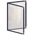 This menu cover boasts a red double stitched leatherette edge for long-lasting use. Its silver smooth metal corners also add a dignified and polished touch. Additionally, it is easy to wipe down at the end of the day, allowing you to give every guest the best possible dining experience. The clear, glossy design of the view panes helps promote excellent visibility, ensuring that customers will be able to easily read your options. Use this menu cover to present your offerings in a refined and organized way!
