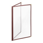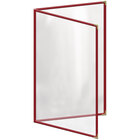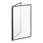 This menu cover boasts a green double stitched leatherette edge for long-lasting use. Its gold decorative metal corners also add a dignified and polished touch. Additionally, it is easy to wipe down at the end of the day, allowing you to give every guest the best possible dining experience. The clear, glossy design of the view panes helps promote excellent visibility, ensuring that customers will be able to easily read your options. Use this menu cover to present your offerings in a refined and organized way!