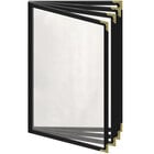 This menu cover boasts a maroon double stitched leatherette edge for long-lasting use. Its gold decorative metal corners also add a dignified and polished touch. Additionally, it is easy to wipe down at the end of the day, allowing you to give every guest the best possible dining experience. The clear, glossy design of the view panes helps promote excellent visibility, ensuring that customers will be able to easily read your options. Use this menu cover to present your offerings in a refined and organized way!