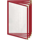 Present your menu offerings in style with this H. Risch, Inc. TEDD Deluxe Sewn 5 1/2" x 8 1/2" maroon 8 view vinyl menu cover. With a colorful leatherette trim, this menu cover promotes a professional appearance in any setting. Its four pockets accommodate (8) 5 1/2" x 8 1/2" inserts, making it perfect for presenting your signature dishes, happy hour specials, wine lists, or dessert menus. Plus, if your menu changes frequently, the inserts can be removed and replaced within seconds.