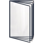 This menu cover boasts a blue double stitched leatherette edge for long-lasting use. Its silver smooth metal corners also add a dignified and polished touch. Additionally, it is easy to wipe down at the end of the day, allowing you to give every guest the best possible dining experience. The clear, glossy design of the view panes helps promote excellent visibility, ensuring that customers will be able to easily read your options. Use this menu cover to present your offerings in a refined and organized way!