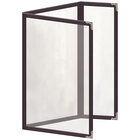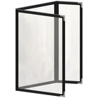 This menu cover boasts a blue double stitched leatherette edge for long-lasting use. Its silver decorative metal corners also add a dignified and polished touch. Additionally, it is easy to wipe down at the end of the day, allowing you to give every guest the best possible dining experience. The clear, glossy design of the view panes helps promote excellent visibility, ensuring that customers will be able to easily read your options. Use this menu cover to present your offerings in a refined and organized way!