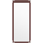 Present your menu offerings in style with this H. Risch, Inc. TES Deluxe Sewn 4 1/4" x 11" red 2 view vinyl menu cover with silver smooth corners and matte finish. With a colorful leatherette trim, this menu cover promotes a professional appearance in any setting. Its single pocket accommodates two 4 1/4" x 11" inserts, making it perfect for presenting your signature dishes, happy hour specials, wine lists, or dessert menus. Plus, if your menu changes frequently, the inserts can be removed and replaced within seconds.