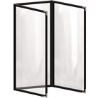 This menu cover boasts a blue double stitched edge for long-lasting use. Its standard decorative silver metal corners also add a dignified and polished touch. Additionally, it is easy to wipe down at the end of the day, allowing you to give every guest the best possible dining experience. The clear, glossy design of the view panes helps promote excellent visibility, ensuring that customers will be able to easily read your options. Use this menu cover to present your offerings in a refined and organized way!