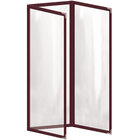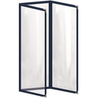 This menu cover boasts a black double stitched edge for long-lasting use. Its standard decorative silver metal corners also add a dignified and polished touch. Additionally, it is easy to wipe down at the end of the day, allowing you to give every guest the best possible dining experience. The clear, glossy design of the view panes helps promote excellent visibility, ensuring that customers will be able to easily read your options. Use this menu cover to present your offerings in a refined and organized way!