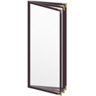 Present your menu offerings in style with this H. Risch, Inc. TETB Deluxe Sewn 4 1/4" x 11" green 6 view vinyl menu cover. With a colorful leatherette trim, this menu cover promotes a professional appearance in any setting. Its three pockets accommodate (6) 4 1/4" x 11" inserts, making it perfect for presenting your signature dishes, happy hour specials, wine lists, or dessert menus. Plus, if your menu changes frequently, the inserts can be removed and replaced within seconds.