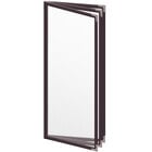 Present your menu offerings in style with this H. Risch, Inc. TETB Deluxe Sewn 4 1/4" x 11" maroon 6 view vinyl menu cover. With a colorful leatherette trim, this menu cover promotes a professional appearance in any setting. Its three pockets accommodate (6) 4 1/4" x 11" inserts, making it perfect for presenting your signature dishes, happy hour specials, wine lists, or dessert menus. Plus, if your menu changes frequently, the inserts can be removed and replaced within seconds.
