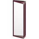 Present your menu offerings in style with this H. Risch, Inc. TETB Deluxe Sewn 4 1/4" x 14" green 6 view vinyl menu cover. With a colorful leatherette trim, this menu cover promotes a professional appearance in any setting. Its three pockets accommodate (6) 4 1/4" x 14" inserts, making it perfect for presenting your signature dishes, happy hour specials, wine lists, or dessert menus. Plus, if your menu changes frequently, the inserts can be removed and replaced within seconds.
