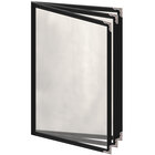 H. Risch, Inc. TETB Deluxe Sewn 5 1/2" x 8 1/2" Black 6 View Vinyl Menu Cover with Silver Decorative Corners and Gloss Finish