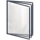 This menu cover boasts a black double stitched leatherette edge for long-lasting use. Its silver decorative metal corners also add a dignified and polished touch. Additionally, it is easy to wipe down at the end of the day, allowing you to give every guest the best possible dining experience. The clear, glossy design of the view panes helps promote excellent visibility, ensuring that customers will be able to easily read your options. Use this menu cover to present your offerings in a refined and organized way!