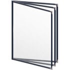 This menu cover boasts a red double stitched leatherette edge for long-lasting use. Its silver decorative metal corners also add a dignified and polished touch. Additionally, it is easy to wipe down at the end of the day, allowing you to give every guest the best possible dining experience. The clear, matte design of the view panes hides scratches and helps promote excellent visibility, ensuring that customers will be able to easily read your options. Use this menu cover to present your offerings in a refined and organized way!