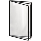 This menu cover boasts a green double stitched leatherette edge for long-lasting use. Its silver decorative metal corners also add a dignified and polished touch. Additionally, it is easy to wipe down at the end of the day, allowing you to give every guest the best possible dining experience. The clear, glossy design of the view panes helps promote excellent visibility, ensuring that customers will be able to easily read your options. Use this menu cover to present your offerings in a refined and organized way!
