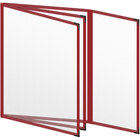 Present your menu offerings in style with this H. Risch, Inc. TETBQ Deluxe Sewn 8 1/2" x 11" green 8 view vinyl menu cover. With a colorful leatherette trim, this menu cover promotes a professional appearance in any setting. Its three and a half pockets accommodate (6) 8 1/2" x 11" inserts and (2) 4 1/4" x 11" inserts, making it perfect for presenting your signature dishes, happy hour specials, wine lists, or dessert menus. Plus, if your menu changes frequently, the inserts can be removed and replaced within seconds.