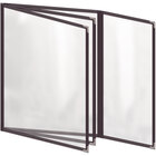 This menu cover boasts a red double stitched leatherette edge for long-lasting use. Its silver decorative metal corners also add a dignified and polished touch. Additionally, it is easy to wipe down at the end of the day, allowing you to give every guest the best possible dining experience. The clear, glossy design of the view panes helps promote excellent visibility, ensuring that customers will be able to easily read your options. Use this menu cover to present your offerings in a refined and organized way!