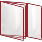 Present your menu offerings in style with this H. Risch, Inc. TETBQ Deluxe Sewn 8 1/2" x 11" red 8 view vinyl menu cover. With a colorful leatherette trim, this menu cover promotes a professional appearance in any setting. Its three and a half pockets accommodate (6) 8 1/2" x 11" inserts and (2) 4 1/4" x 11" inserts, making it perfect for presenting your signature dishes, happy hour specials, wine lists, or dessert menus. Plus, if your menu changes frequently, the inserts can be removed and replaced within seconds.