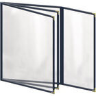 This menu cover boasts a red double stitched leatherette edge for long-lasting use. Its gold decorative metal corners also add a dignified and polished touch. Additionally, it is easy to wipe down at the end of the day, allowing you to give every guest the best possible dining experience. The clear, glossy design of the view panes helps promote excellent visibility, ensuring that customers will be able to easily read your options. Use this menu cover to present your offerings in a refined and organized way!