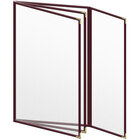 This menu cover boasts a black double stitched leatherette edge for long-lasting use. Its gold smooth metal corners also add a dignified and polished touch. Additionally, it is easy to wipe down at the end of the day, allowing you to give every guest the best possible dining experience. The clear, matte design of the view panes hides scratches and helps promote excellent visibility, ensuring that customers will be able to easily read your options. Use this menu cover to present your offerings in a refined and organized way!