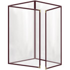 This menu cover boasts a red double stitched leatherette edge for long-lasting use. Its gold smooth metal corners also add a dignified and polished touch. Additionally, it is easy to wipe down at the end of the day, allowing you to give every guest the best possible dining experience. The clear, glossy design of the view panes helps promote excellent visibility, ensuring that customers will be able to easily read your options. Use this menu cover to present your offerings in a refined and organized way!