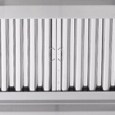 The hood uses (3) 20" x 16" baffle-type filters, and the filters are made from stainless steel to provide durability and make cleaning easy. Grease extracted by the filter is collected in a grease trough, which drains into a stainless steel grease cup for disposal. 18-gauge 430 stainless steel is used on all exposed surfaces to give it excellent durability and cleanability, while the MIG-welded frame provides seamless, liquid-tight joints. This model is also engineered with a 3" air gap on the back of the hood, which provides clearance and protection for combustible walls where code requires.