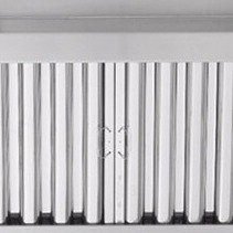 The hood uses (4) 20" x 20" and (1) 20" x 16" baffle-type filters, and the filters are made from stainless steel to provide durability and make cleaning easy. Grease extracted by the filter is collected in a grease trough, which drains into a stainless steel grease cup for disposal. 18-gauge 430 stainless steel is used on all exposed surfaces to give it excellent durability and cleanability, while the MIG-welded frame provides seamless, liquid-tight joints. This model is also engineered with a 3" air gap on the back of the hood, which provides clearance and protection for combustible walls where code requires.