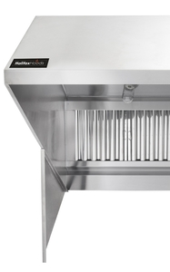 The hood features a box-style canopy design to provide superior performance. This model is also engineered with a 3" air gap on the back of the hood, which provides clearance and protection for combustible walls where code requires.