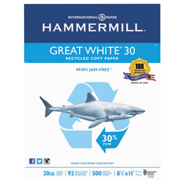 Ensure your office has the essentials with this Hammermill 86700 8 1/2" x 11" white case of 20 lb. recycled copy paper. Thanks to its 20 lb. basis weight, this 8 1/2" x 11" standard letter size copy paper is perfect for use in a variety of applications such as copiers, inkjet printers, and laser printers. Boasting a U.S. 92 and international 105 brightness rating, this copy paper is ideal for sending crisp and clear reports. Use it to create professional documents for your office or establishment.