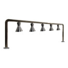 Easily warm and display your signature dishes with this Hanson Heat Lamps heat lamp! Great for use at buffets, catered events, or banquet halls, this heat lamp keeps prepared foods warm and fresh. It includes (5) 300-style lamp shades and an attractive black finish for a classic, professional appearance. Its durable aluminum light heads and stainless steel body and fittings ensure long-lasting use in your establishment. It is easy to use with a simple on / off toggle switch.