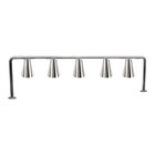 Easily warm and display your signature dishes with this Hanson Heat Lamps heat lamp! Great for use at buffets, catered events, or banquet halls, this heat lamp keeps prepared foods warm and fresh. It includes (5) 900-style lamp shades and an attractive chrome finish for a classic, professional appearance. Its durable aluminum light heads and stainless steel body and fittings ensure long-lasting use in your establishment. It is easy to use with a simple on / off toggle switch.