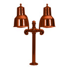 This dual-bulb culinary heat lamp is designed to be permanently mounted to your cutting board or countertop (sold separately) and features flexible gooseneck arms to position the warming lights over your food to maintain safe serving temperatures. This heat lamp includes (2) 250-watt Teflon®-coated infrared heat bulbs designed to keep shards contained and to prevent shattered glass from spreading and causing a safety hazard if a bulb is broken. Its internal components are designed to withstand temperatures up to 392 degrees Fahrenheit, including glazed porcelain and nickel lamp sockets with 18 gauge silver-stranded wiring made with Teflon® insulation rated for high-temperature use. This heat lamp requires a 120V electrical connection and features a 7' power cord that runs from the bottom of the lamp's upright.