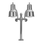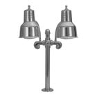 Warm and display freshly cooked dishes with style and ease thanks to this Hanson Heat Lamps dual bulb mounted heat lamp! Great for use at your buffet, catered event, or banquet hall, this heat lamp ensures that prepared foods are kept warm and fresh for all your guests to enjoy. This lamp is designed with a durable stainless steel upright body and fittings, as well as an on/off switch. It features (2) 600 series 6 1/2" x 8" round shades and an attractive stainless steel finish that ensures a classic, professional appearance that complements any aesthetic. The lamp heads are made with aluminum for long-lasting use and a clear enamel topcoat that prevents tarnishing and reduces the need to polish the surface. This heat lamp features adjustable uprights with a bulb height range of 17”-25” from the counter when pointed straight down, as well as flexible goosenecks for aiming the bulbs’ light in the direction they’re needed most at a height from 17"- 42", depending on the direction of the shades. It also features a 4" diameter mounting flange with 1 1/2" bolts.