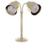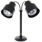Outfitted with matching 5 1/2" conical shades, this lamp is mounted on a 9" solid round base, and the flexible gooseneck allows you to position warming light right where you need it most. Not only do the dual bulbs simultaneously deliver the heat needed to keep your food hot, fresh, and ready to serve at all times, but they also illuminate the product so you can fulfill orders more quickly and easily! The heavy gauge aluminum construction ensures long-lasting durability, and thanks to the 200 series shades, this heat lamp focuses warmth on your product while also adding a modern touch to your facility. Two 250W Teflon® coated infrared heat bulbs are included for maximum convenience and safety. In the event that one of your bulbs break, the Teflon® keeps the shards contained, preventing the shattered glass from spreading everywhere and becoming a safety hazard. This heat lamp requires a 115V electrical connection.